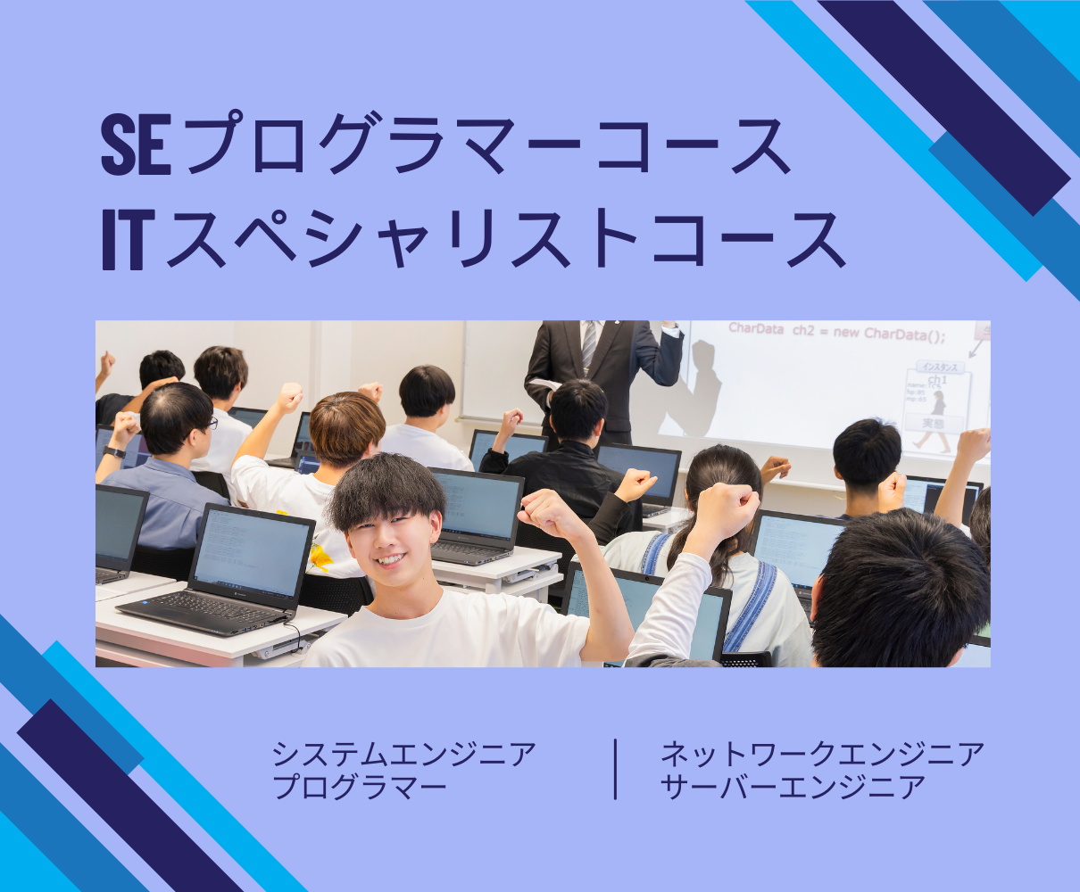 1040:〜11:40 体験授業+学校・コース紹介(希望コース別) 60分