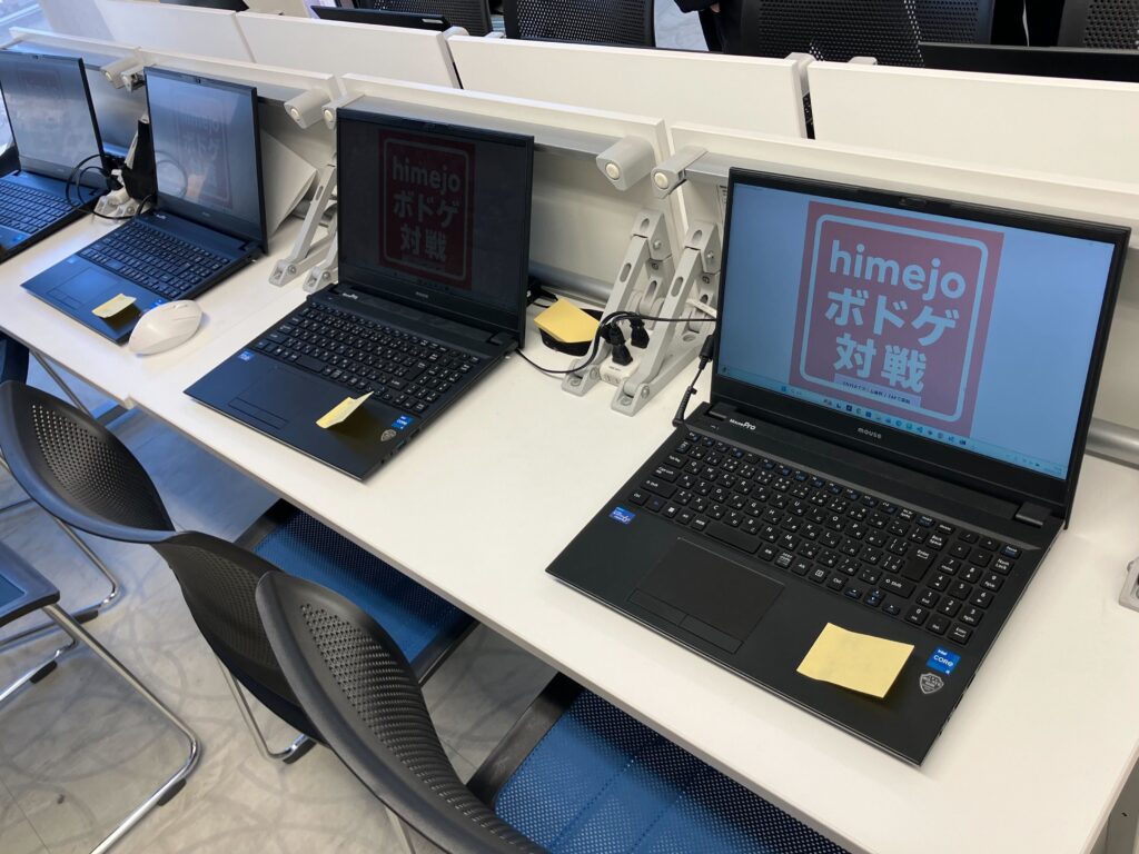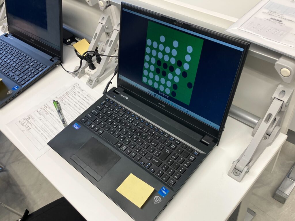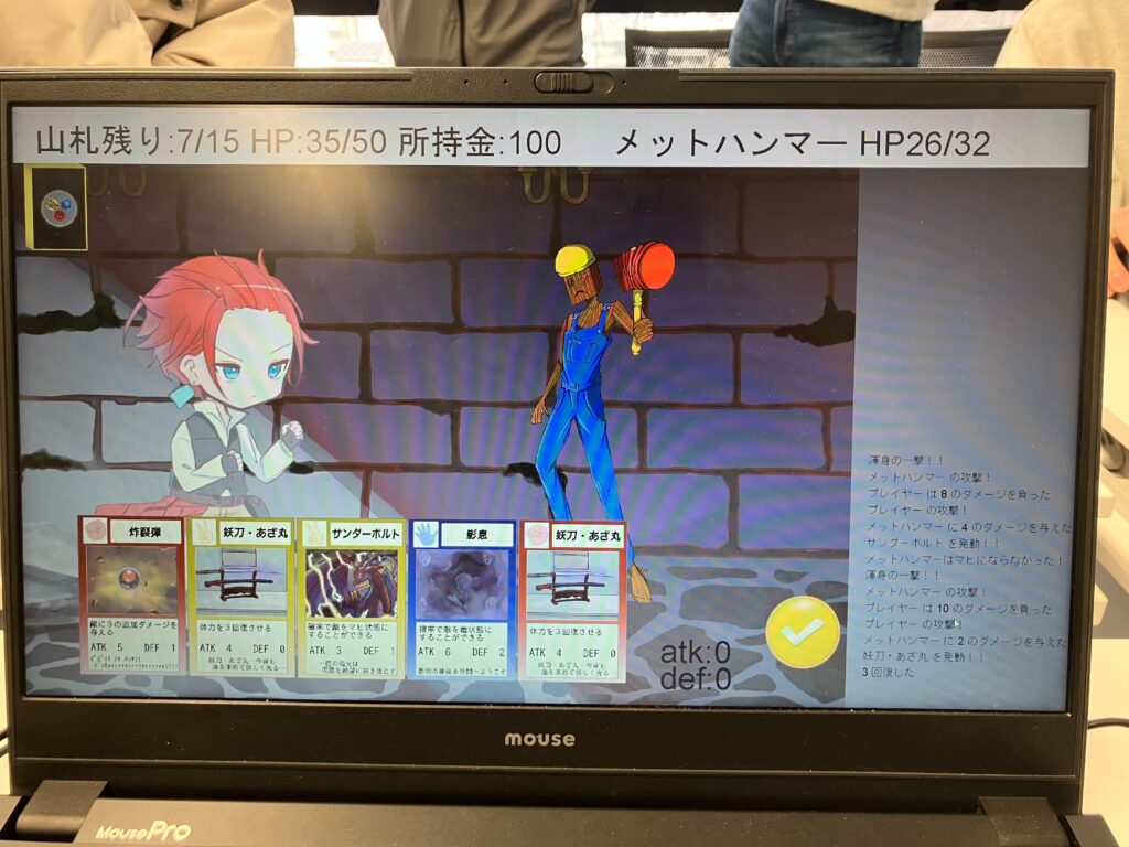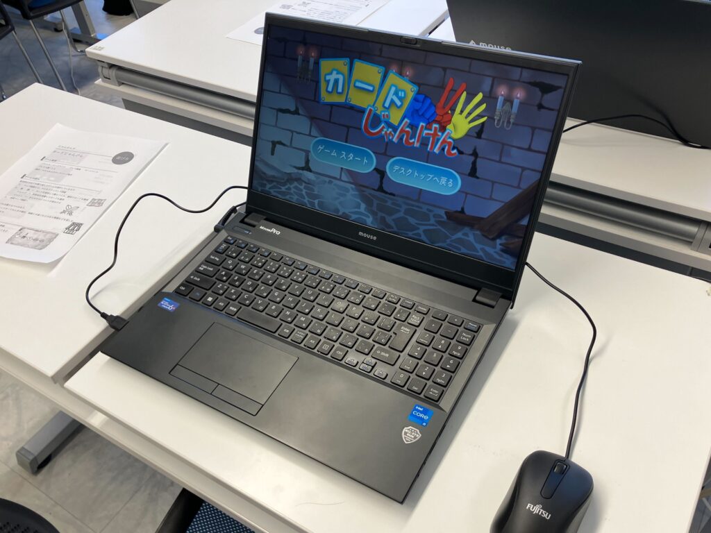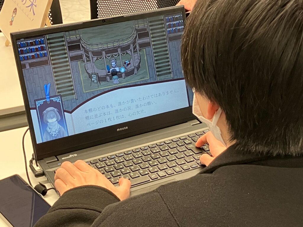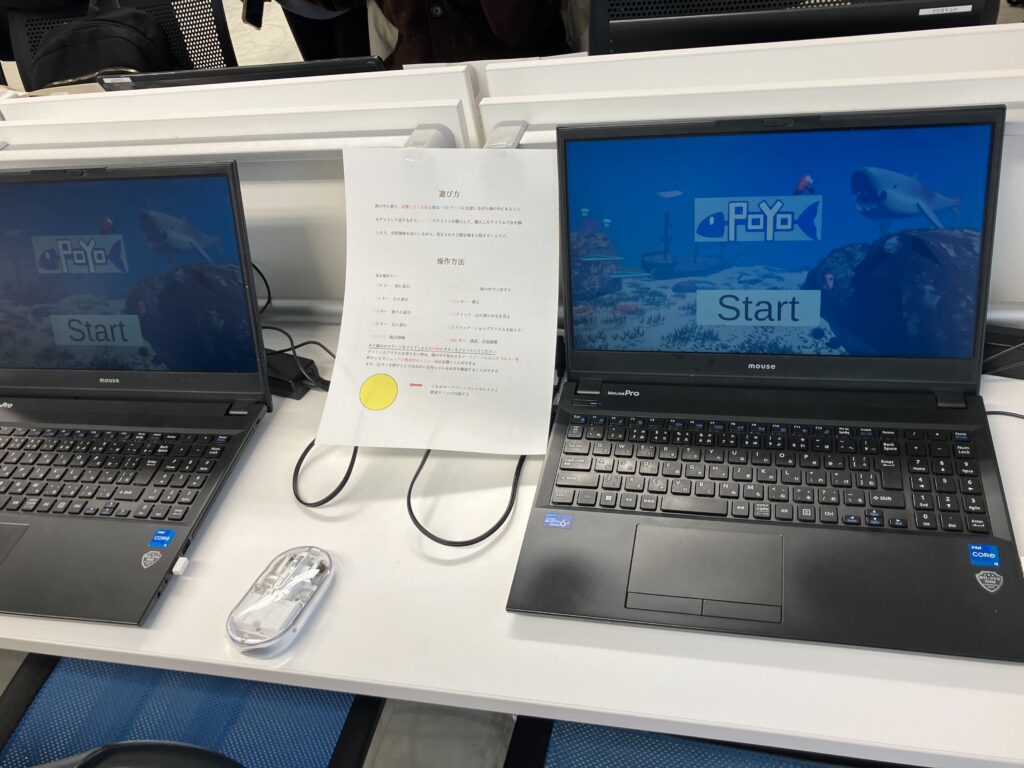 発表会はプレゼン形式ではなく、各チームの作品を展示する体験型のスタイルで実施。来場者が各ブースを回り、実際にプレイしながら、アンケート用紙に総合評価(10点満点)とコメントを記入していく形式で行われました。