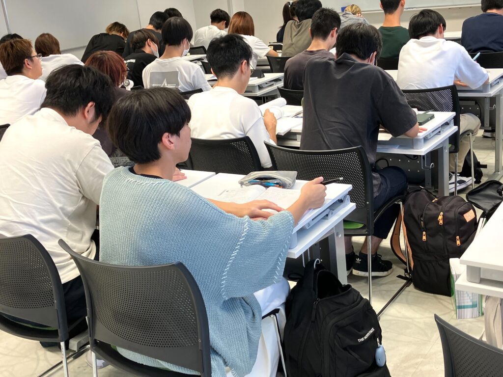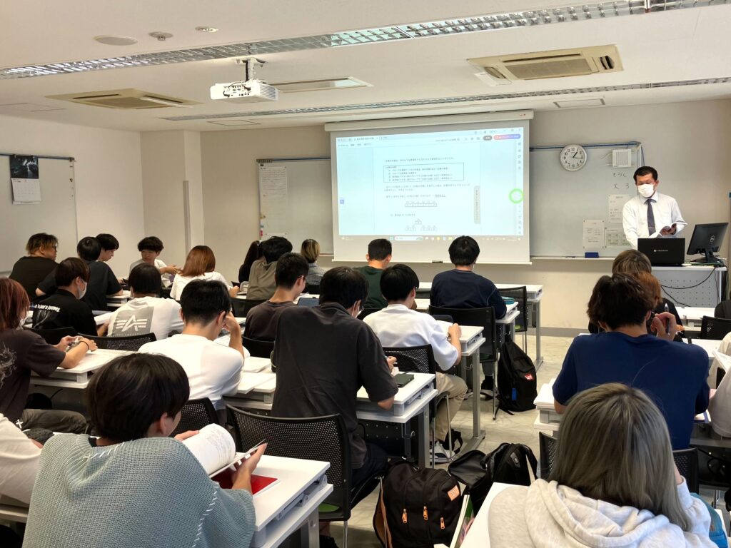 授業は、時々先生が学生を指名して「この問題の答えは?」「なぜそうなるの?」と問いかけ、全体で理解を深めていくスタイル。現場での経験談を踏まえた解説もあり、学生たちが理解しやすいよう、授業展開を工夫されていました。