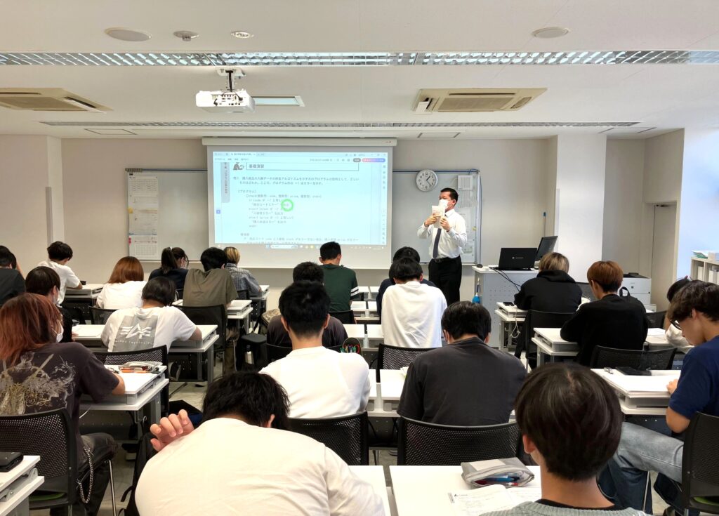 授業は前期に学んだ基礎知識をもとに、問題演習を中心に構成。夏にはサーティファイ主催の検定試験で実力を試し、その後は本格的に基本情報技術者試験対策へと進みました。