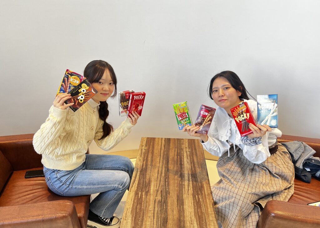 校内では、学生同士がポッキーをシェアして楽しむ様子が見られました。