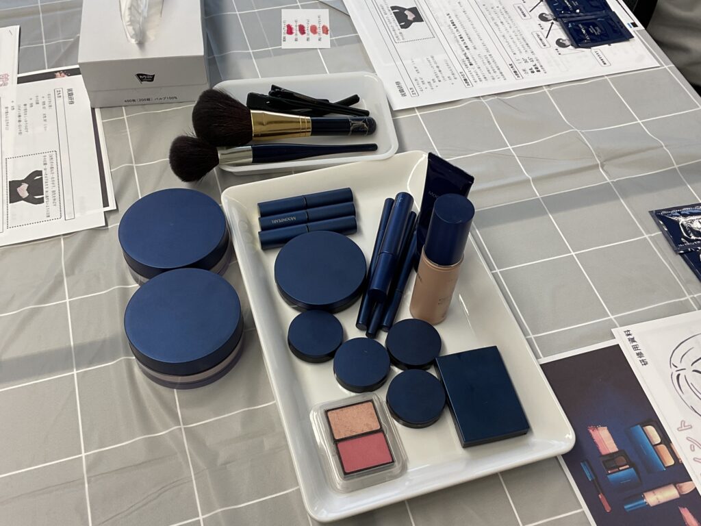 その後は、実際にコスメを使った実践タイム!資料を確認しながら、鏡を見て一つひとつの工程を丁寧に進めていきます。「見る」と「実際に手を動かす」両方を経験することで、就活メイクのイメージがより具体的になった様子でした。