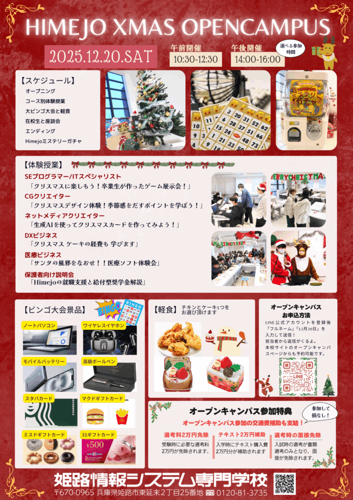12月20日(土)クリスマスオープンキャンパスを実施します